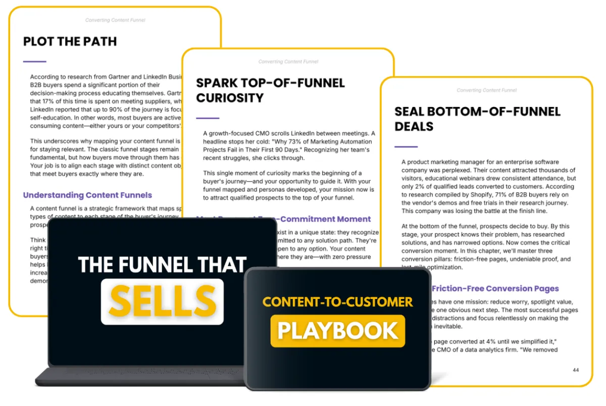 We've taken everything we've learned driving massive impact on small marketing teams with big targets, and built the Content-To-Customer Playbook—a system to turn content into buyers with answer-ready pages, proof-first copy, and deliberate distribution.